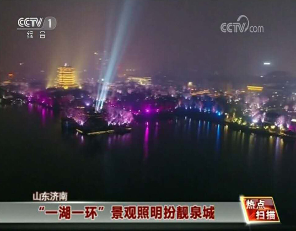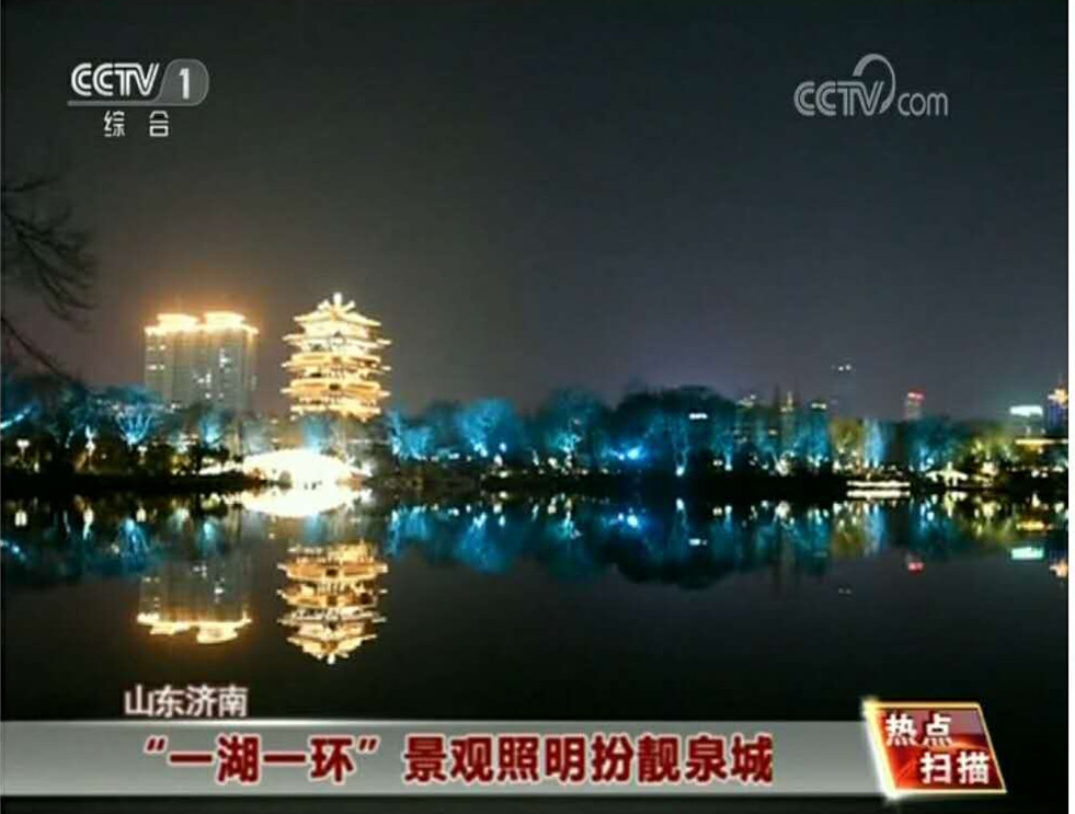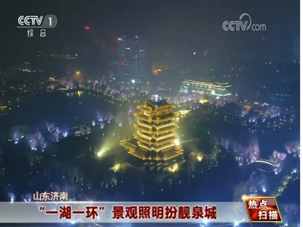 2月3日央視《晚間新聞》播出《“一湖一環(huán)”景觀照明扮靚泉城》,泉城濟南“一湖一環(huán)”景觀亮相全國。