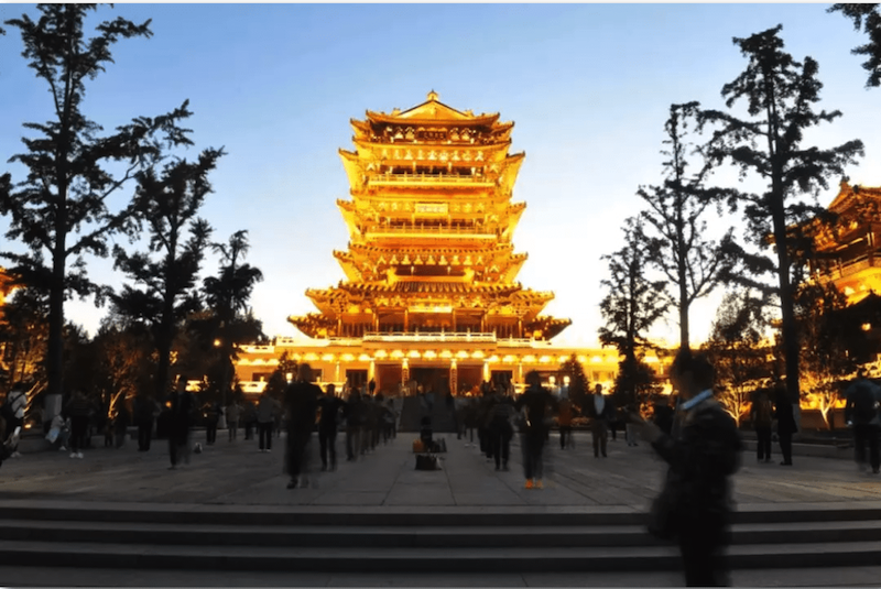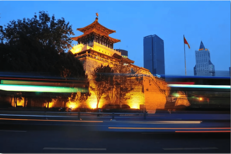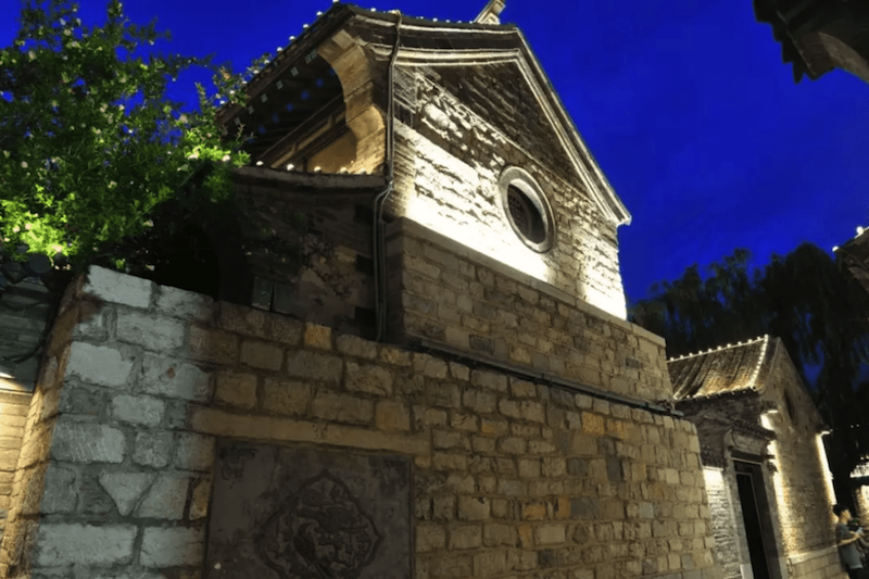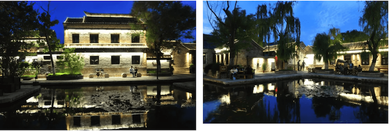夜幕降臨,黑白分明的明代建筑被燈光裝點(diǎn)得更加迷離。