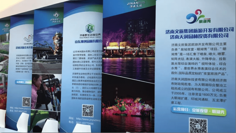 集團(tuán)展位位于文化產(chǎn)業(yè)綜合展示區(qū),臨近中央舞臺,是人流量最大的核心區(qū)域。展區(qū)面積約150平米,濟(jì)南素有“瀟灑似江南”的美譽,設(shè)計以中國傳統(tǒng)園林的元素結(jié)合現(xiàn)代簡約的設(shè)計手段,營造一個具有古典氣息、文化氣質(zhì)、自然理念的展示空間,展示濟(jì)南文旅發(fā)展集團(tuán)及各子公司的靚麗名片。同時采用平昌冬奧會“北京八分鐘”同款Led透明顯示屏,結(jié)合展廳圓形景窗,形成炫彩3D的立體效果,展示集團(tuán)Logo形象,引來無數(shù)市民及游客駐足觀賞。