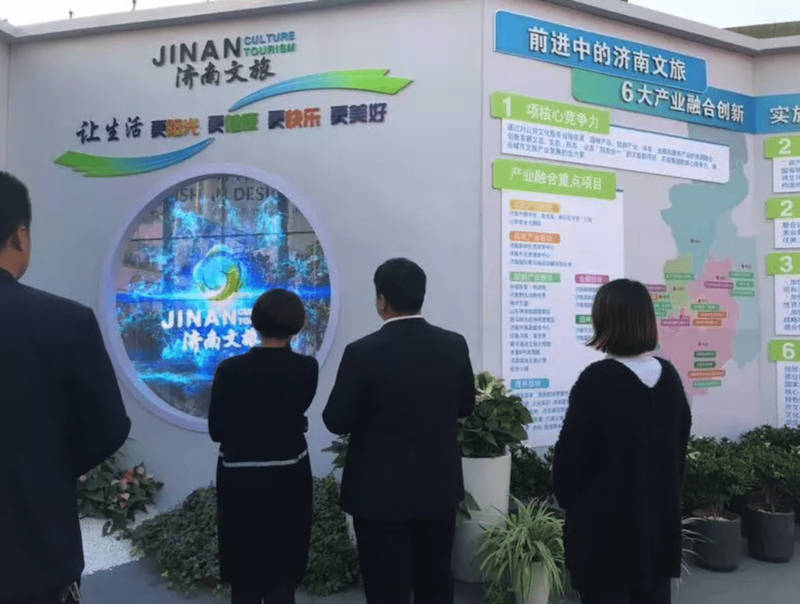 10月11日上午,第七屆山東文化產(chǎn)業(yè)博覽交易會在濟(jì)南國際會展中心盛大開幕。本屆文博會的主題是“新時代、新動能、新創(chuàng)意、新發(fā)展”。濟(jì)南文旅集團(tuán)是市委、市政府成立的市屬六大投融資平臺之一,作為全市文化、旅游、體育等產(chǎn)業(yè)資源整合、建設(shè)與運營的產(chǎn)業(yè)集團(tuán)和城市文旅品牌運營商,首次參展亮相,以“新時代、新動能、新文旅,讓生活更陽光、更健康、更快樂、更美好;做文旅融合創(chuàng)新發(fā)展的城市運營商,建設(shè)大強(qiáng)美富通現(xiàn)代化國際大都市”為主題,通過體現(xiàn)傳統(tǒng)與現(xiàn)代科技相結(jié)合的綠色、科技、創(chuàng)新的展位設(shè)計,結(jié)合現(xiàn)場互動體驗活動等多種展現(xiàn)形式,宣傳推廣集團(tuán)及子公司品牌形象與優(yōu)勢資源項目,提升品牌知名度,擴(kuò)大集團(tuán)影響力,助力招商引資,開拓發(fā)展。