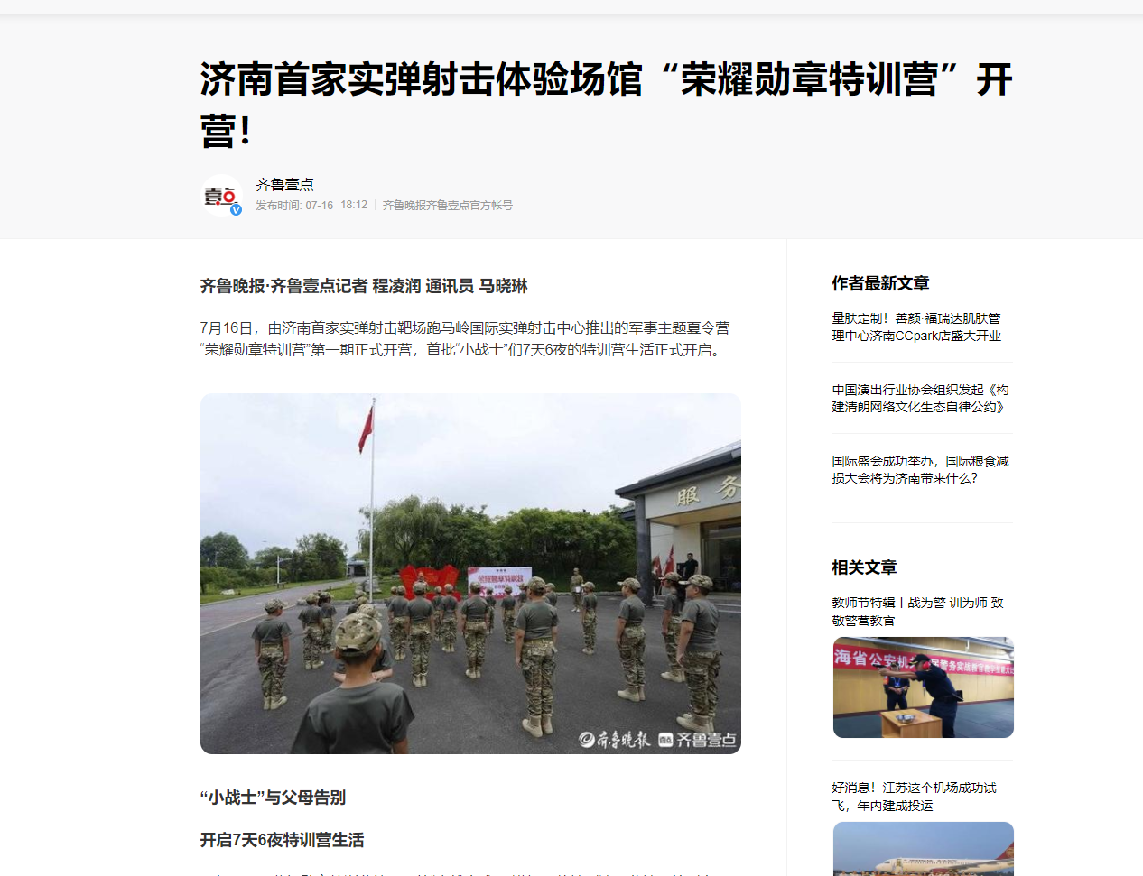 7月16日,由跑馬嶺國(guó)際實(shí)彈射擊中心推出的軍事主題夏令營(yíng)“榮耀勛章特訓(xùn)營(yíng)”第一期正式開營(yíng)。濟(jì)南文旅投資集團(tuán)相關(guān)領(lǐng)導(dǎo)及省內(nèi)10余家媒體出席開營(yíng)儀式。