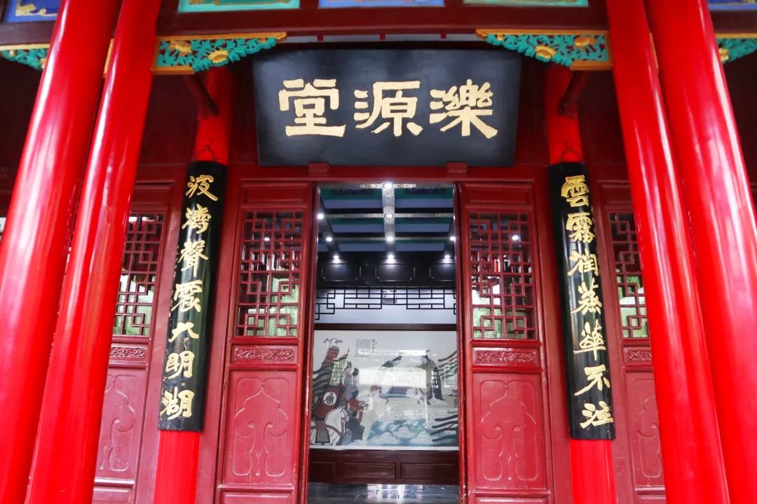 趵突泉濼源堂懸掛木刻楹聯(lián):“云霧潤蒸華不注,波濤聲震大明湖”,出自元代書畫家趙孟頫詠句。