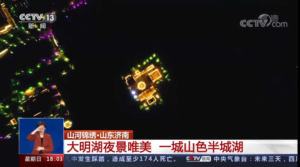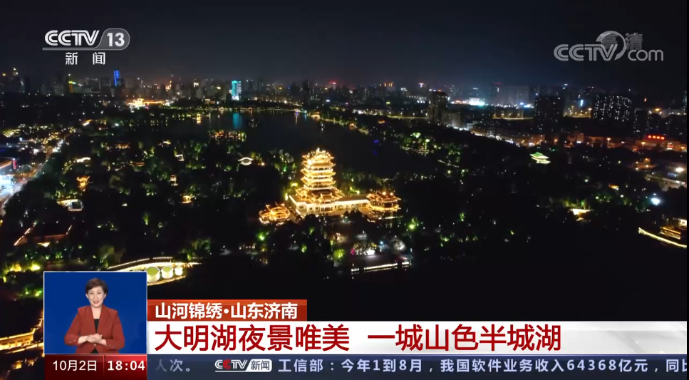 10月2日央視新聞頻道《共同關(guān)注》欄目以《山河錦繡·山東濟南 大明湖夜景唯美 一城山色半城湖》為題,對濟南大明湖的璀璨夜景進行了報道,具體報道內(nèi)容如下: