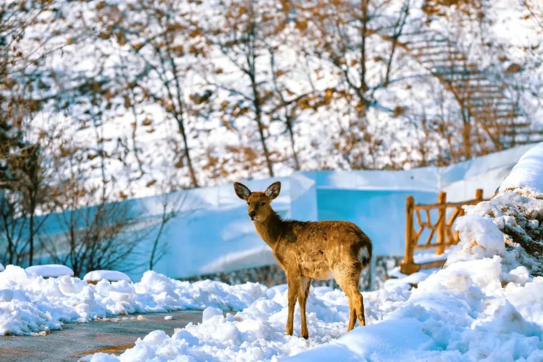 在這里,你可以遇見雪地精靈。東北“傻”狍子、梅花鹿、雪地松鼠、羊駝、駱駝、孔雀、鴕鳥、天鵝、荷蘭鼠……百余種小萌寵,親密互動。