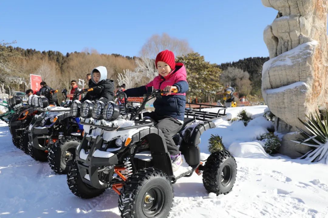 在這里,你可以暢玩冰天雪地?;┤Α⒒┸?、漂移車、雪地黃包車、雪地坦克、雪地摩托、雪地轉(zhuǎn)轉(zhuǎn)……幾十種戲雪設(shè)備,大型親子戲雪樂園全家一起嗨不停。