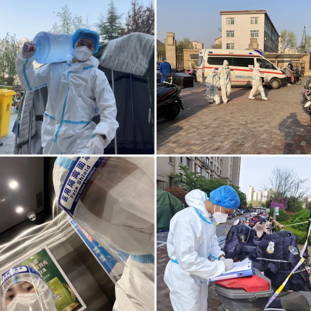 4月18日保利社區(qū)騰騏冠宸小區(qū)內(nèi)出現(xiàn)一名密接,在30多度的天氣下王以軒每次連續(xù)值守10余個(gè)小時(shí),體力嚴(yán)重透支。他說(shuō):“我穿著密不透風(fēng)的防護(hù)服,10分鐘就會(huì)感到悶熱,防護(hù)服里面的衣服也會(huì)被汗水浸濕,頭發(fā)像是剛洗了一樣,汗珠順著臉頰往下流,濕透的口罩換了一個(gè)又一個(gè)……”他的雙手被汗水泡的發(fā)白,但仍然保持“柔性服務(wù)、硬性防控”的態(tài)度,按規(guī)定消毒,做好居民接觸臺(tái)賬登記,用自己的勇毅前行和默默奉獻(xiàn)踐行著文旅人的責(zé)任和擔(dān)當(dāng)。
