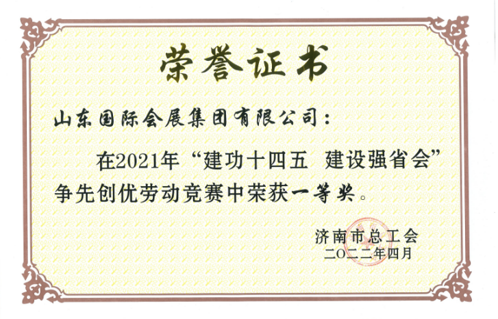 山東國(guó)際會(huì)展集團(tuán)榮獲濟(jì)南市五一勞動(dòng)獎(jiǎng)狀