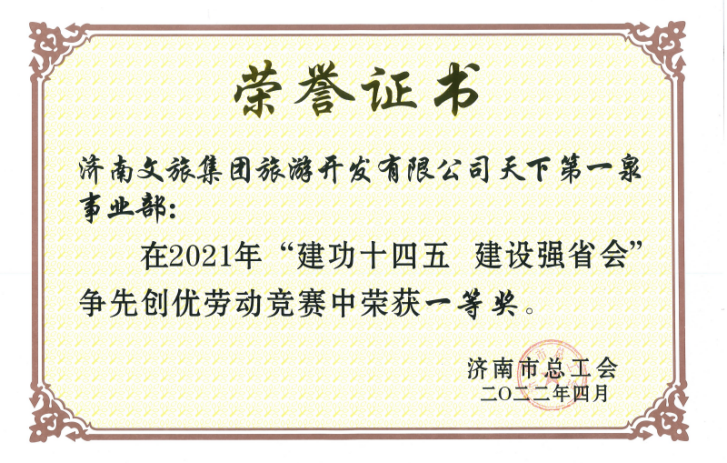 旅開(kāi)公司第一泉事業(yè)部被評(píng)為勞動(dòng)競(jìng)賽先進(jìn)班組一等獎(jiǎng)