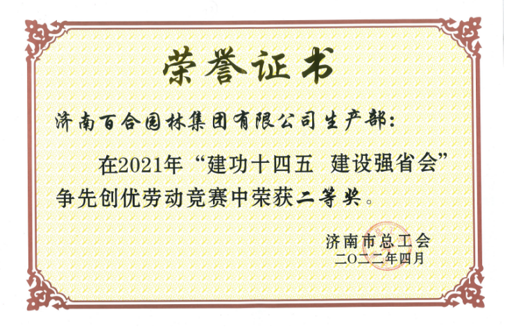百合園林集團(tuán)生產(chǎn)部被評(píng)為勞動(dòng)競(jìng)賽先進(jìn)班組二等獎(jiǎng)