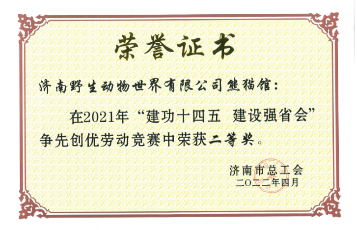 神洲園林濟(jì)南野生動(dòng)物世界熊貓館被評(píng)為勞動(dòng)競(jìng)賽先進(jìn)班組二等獎(jiǎng)