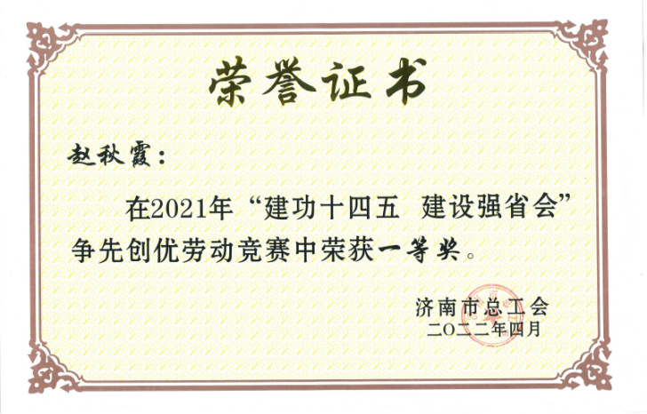 近日,市總工會(huì)《關(guān)于表?yè)P(yáng)2021 年“建功十四五 建設(shè)強(qiáng)省會(huì)”爭(zhēng)先創(chuàng)優(yōu)勞動(dòng)競(jìng)賽優(yōu)秀集體和優(yōu)秀個(gè)人的通報(bào)》印發(fā),集團(tuán)總部及部分重點(diǎn)子公司集體和個(gè)人獲得優(yōu)異成績(jī)!