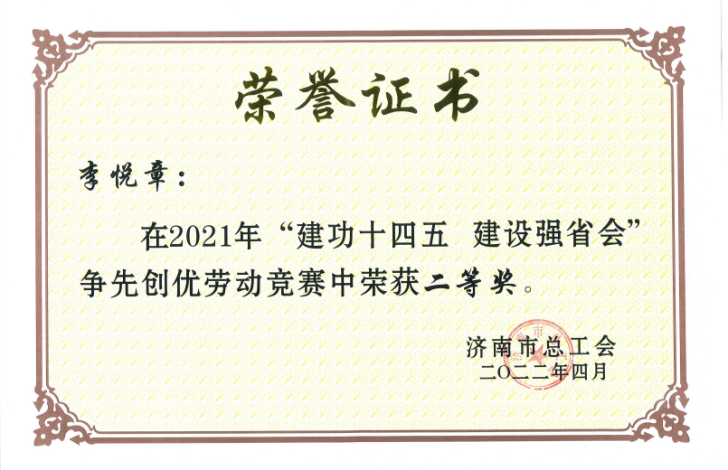 集團(tuán)總部李?lèi)傉卤辉u(píng)為勞動(dòng)競(jìng)賽先進(jìn)個(gè)人二等獎(jiǎng)