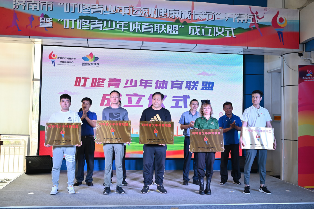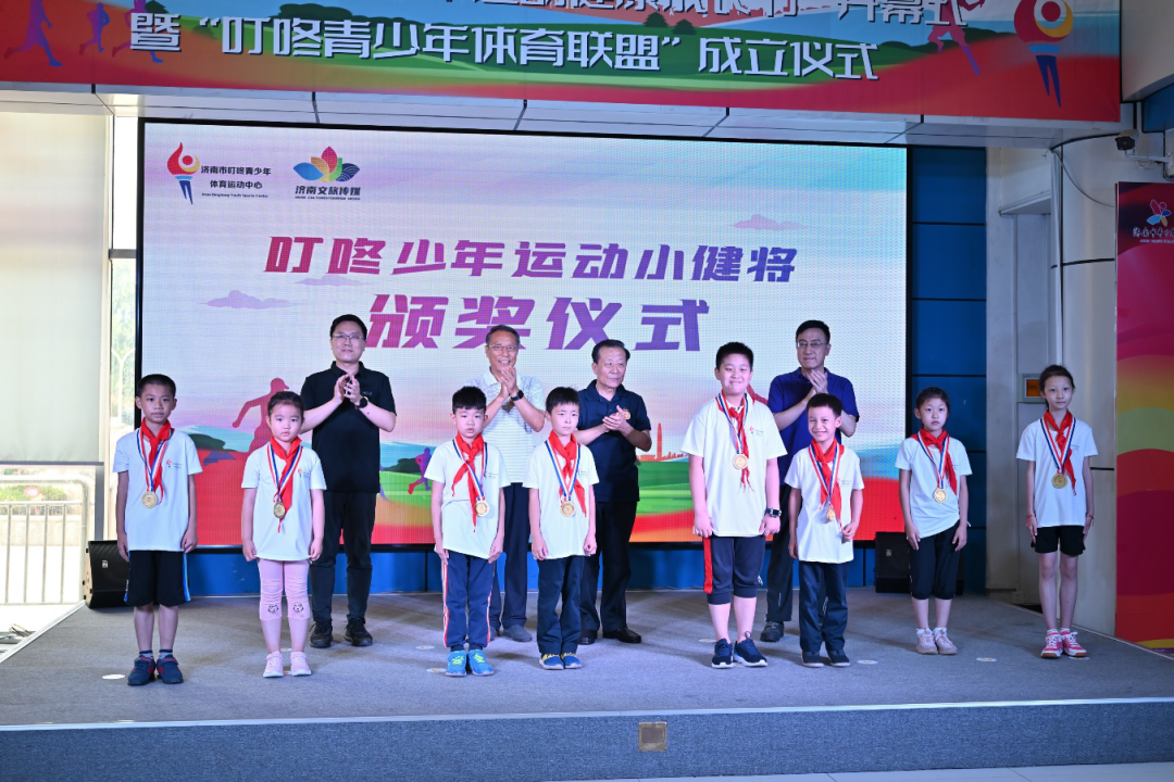 儀式上,參會(huì)領(lǐng)導(dǎo)為“叮咚青少年體育聯(lián)盟”代表授牌,并為“運(yùn)動(dòng)小健將”代表發(fā)放獎(jiǎng)牌。最后,參會(huì)領(lǐng)導(dǎo)登臺(tái)共同啟動(dòng) 2022年濟(jì)南市“叮咚青少年運(yùn)動(dòng)健康成長(zhǎng)節(jié)”,標(biāo)志著“叮咚青少年體育聯(lián)盟”同步正式成立。