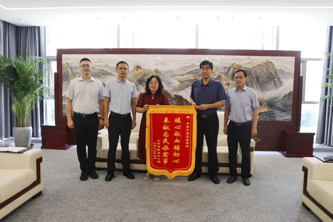 獻(xiàn)血活動之前,山東省血液中心向濟(jì)南文旅集團(tuán)頒發(fā)錦旗,對集團(tuán)關(guān)心獻(xiàn)血公益事業(yè)所作的貢獻(xiàn)表示感謝。
