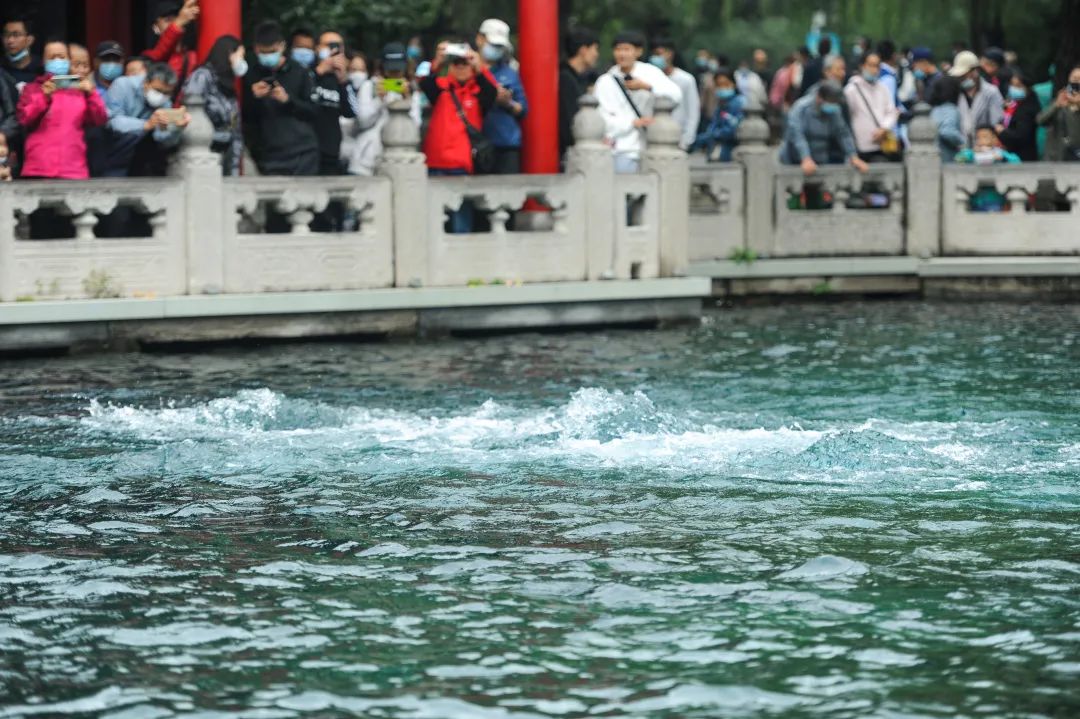 據(jù)了解,當(dāng)趵突泉地下水位達(dá)到28.50米時(shí),“趵突騰空”勝景就會(huì)出現(xiàn),而趵突泉地下水位躍升至29米時(shí),濟(jì)南72名泉中水位最高的月牙泉才能噴涌,也標(biāo)志著72名泉全部噴涌。據(jù)統(tǒng)計(jì),截至8月15日“趵突騰空”已持續(xù)40天,“月牙飛瀑”也持續(xù)了31天,正值最佳賞泉觀水時(shí)期。