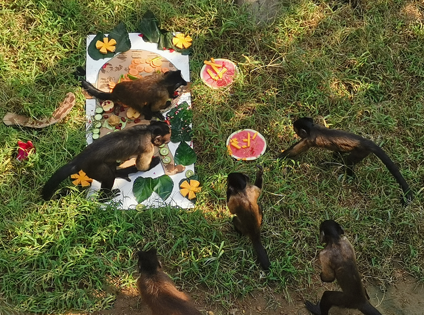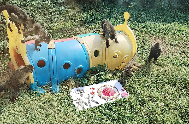 濟(jì)南野生動(dòng)物世界為動(dòng)物們準(zhǔn)備了定制月餅,鮮肉、水果、蔬菜、窩頭……口味齊全、應(yīng)有盡有,通過(guò)食物豐容的方式將食物花樣呈現(xiàn),增強(qiáng)動(dòng)物們的探索能力。