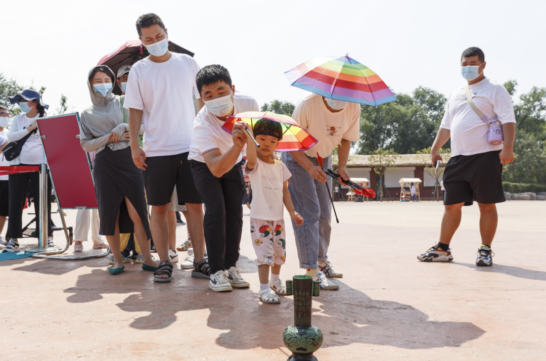 活動(dòng)期間,凡是入園的游客均可參與“思念背景墻”前舉辦漢代投壺游戲。參與活動(dòng)就有機(jī)會(huì)拿親子樂(lè)園通票、投喂券、紀(jì)念禮品。