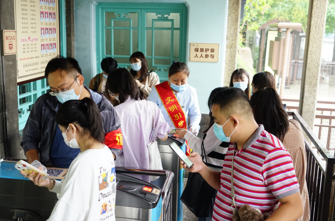 天下第一泉風(fēng)景區(qū)實(shí)行出入口分離,并嚴(yán)格落實(shí)“限量、預(yù)約、錯(cuò)峰”要求,實(shí)行門票實(shí)名預(yù)約和線上售票制度,減少線下接觸。實(shí)時(shí)關(guān)注園區(qū)客流情況,嚴(yán)格按照承載量要求控制客流。