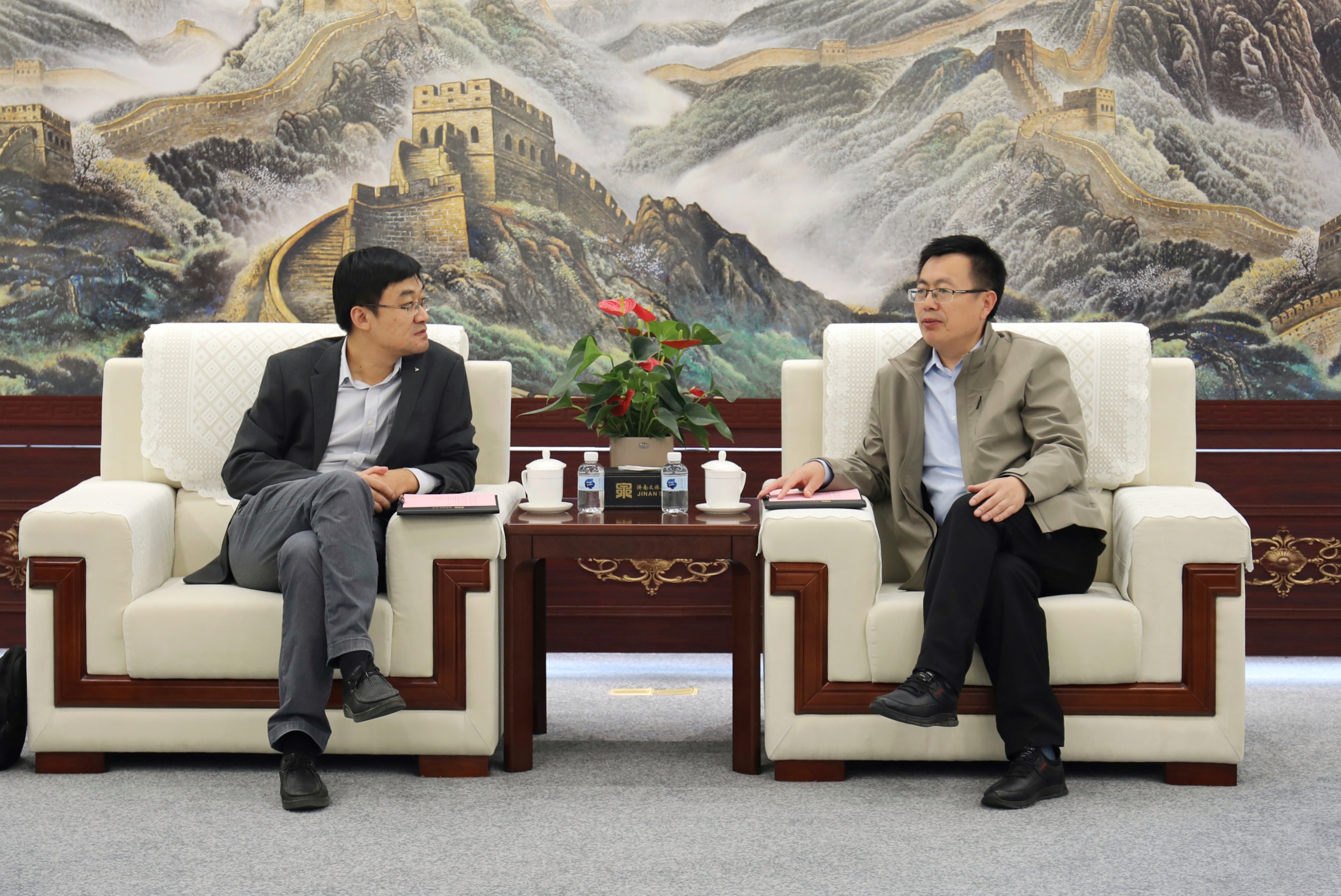 10月8日下午,山東精品旅游產(chǎn)業(yè)新舊動能轉(zhuǎn)換“五年取得突破”媒體采風(fēng)團走進濟南文旅集團。山東省文旅廳產(chǎn)業(yè)發(fā)展處二級調(diào)研員王欣源,濟南市文化和旅游局產(chǎn)業(yè)發(fā)展處處長門桂蒼,人民日報山東站、新華網(wǎng)、新華網(wǎng)客戶端、魯網(wǎng)、山東交通廣播、中國旅游報等駐濟重點媒體參加活動。