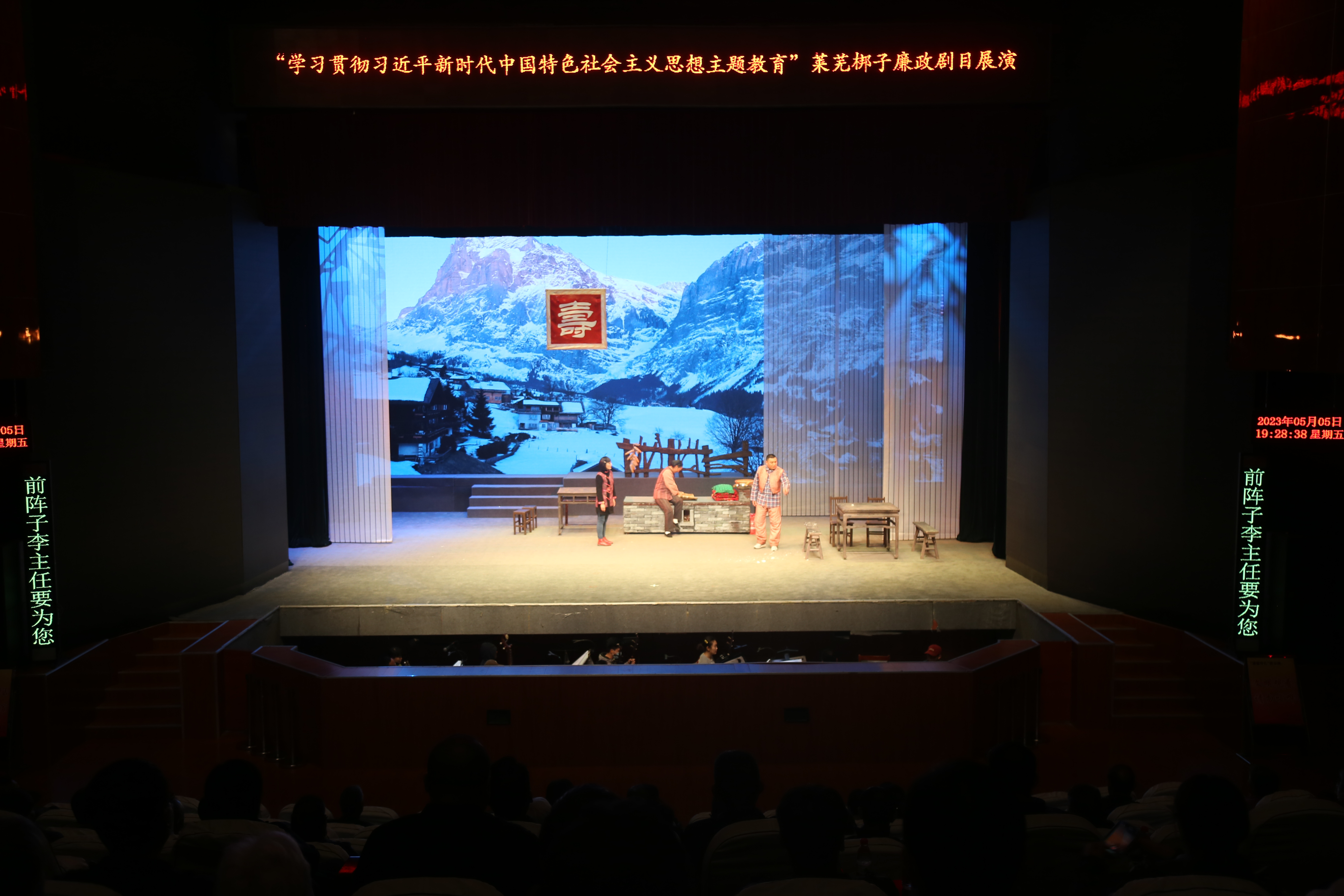 萊蕪梆子是濟南市萊蕪區(qū)地方傳統(tǒng)戲劇,國家級非物質(zhì)文化遺產(chǎn),《兒行千里》作為萊蕪梆子的代表做之一,講述了高官鄭耀忠榮歸故里為母親祝壽,借機送禮者蜂擁而至,鄭耀忠步步沉淪,鋃鐺入獄,而后老母親竭力籌措替兒子償還贓款,并對兒子諄諄教誨,最終鄭耀忠幡然醒悟,戴罪立功。該劇發(fā)人深省,給全體黨員干部及入黨積極分子帶來了強烈的視覺沖擊和心靈震懾,進一步警醒大家要堅定理想信念,不斷增強拒腐防變的思想認識和能力。