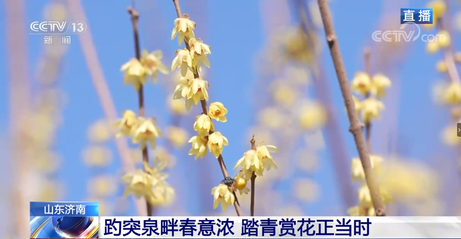 在正對著公園核心景觀“趵突騰空”的濼源堂門口,和公園東南角的“滄園”里面,蠟梅花開得正好。鵝黃的花朵開滿枝頭,香氣濃郁。蠟梅花期很長,從春節(jié)前一直開到現(xiàn)在。徜徉在趵突泉公園里,各色鮮花與古色古香的建筑物、靈動清澈的泉水相映成趣,一切都是這么春意盎然,生機勃勃。(來源 央視新聞)
