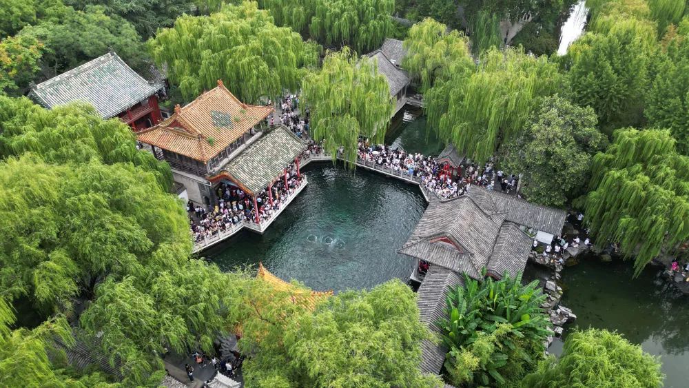 8月13日,游客在趵突泉公園游玩 無人機照片