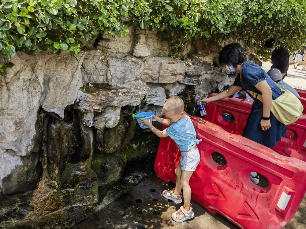 黑虎泉邊的取水點,市民、游客感受親水樂趣