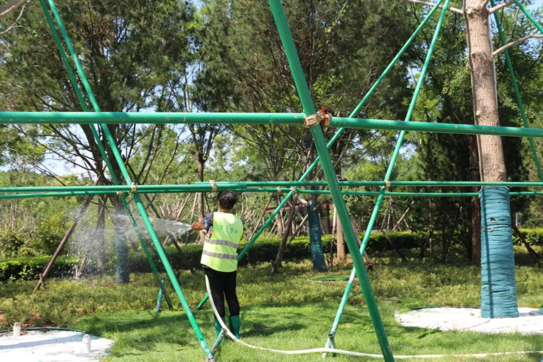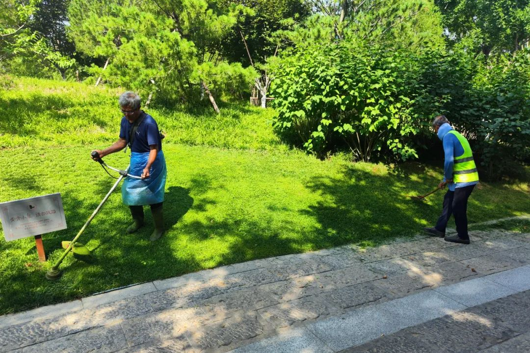 一支“規(guī)范化、精準(zhǔn)化”的養(yǎng)護(hù)隊伍養(yǎng)護(hù)著景區(qū)的一草一木,對佛慧山牌坊兩側(cè)的銀杏樹、林蔭大道兩側(cè)的五角楓、境水映秀噴泉四周等區(qū)域進(jìn)行精細(xì)化養(yǎng)護(hù)管理,澆水方式上采用噴灌帶、人工管道澆灌等相結(jié)合方式。根據(jù)現(xiàn)場情況采用高空作業(yè)車、粉碎車等先進(jìn)的園林機械設(shè)備,提高了精細(xì)化養(yǎng)護(hù)管理,打造出一片生機勃勃、綠樹成蔭、花團(tuán)錦簇的景色。