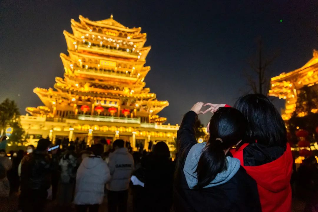 2023年春節(jié)假期以來(1月21日-2月8日),超然樓已接待入樓游客近3萬人次,是去年同期客流量的4倍,售票收入也翻了兩番。晚間亮燈時分,超然樓廣場更是人頭攢動、摩肩接踵,瞬時最高客流量達到2000人次。