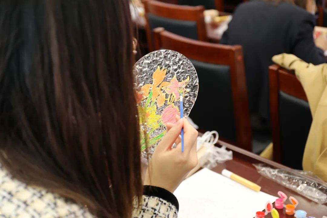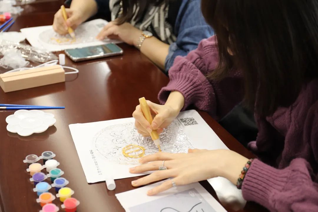 在老師的悉心指導(dǎo)下,女同胞們充分發(fā)揮自己的想象力和創(chuàng)造力,一邊認(rèn)真地學(xué)著,動(dòng)手描繪著自己心儀的圖案,一邊互相切磋,交流色彩搭配和造型要素,活動(dòng)現(xiàn)場(chǎng)歡聲笑語(yǔ)、其樂融融。