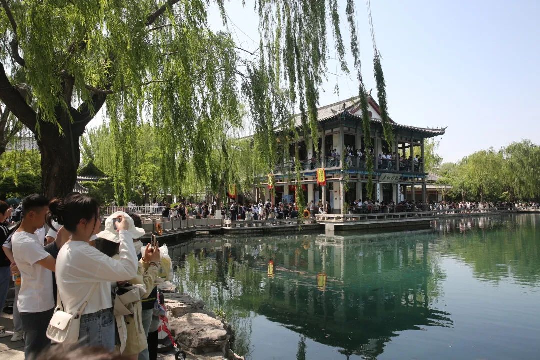 “五一”假期,天下第一泉景區(qū)內(nèi)游人如織,來自五湖四海的游客絡(luò)繹不絕,競相感受趵突泉的獨特魅力。大家紛紛拿起手中的手機和相機記錄“趵突騰空”,拍攝泉池中的網(wǎng)紅錦鯉,火爆的場景令人感受到濃濃的假日氣氛,無論在趵突泉三股水旁邊,黑虎嘯月的黑虎泉邊,還是觀錦鯉戲水的五龍?zhí)杜?hellip;…到處游人如織,人氣爆棚,大家在此賞泉拍照,感受大美泉城。