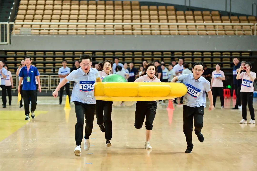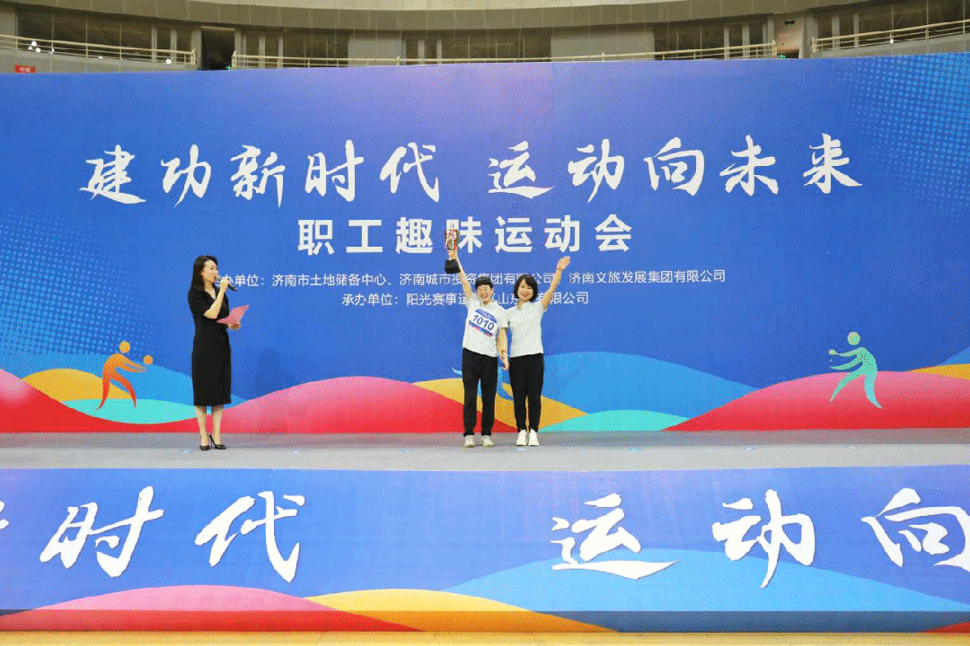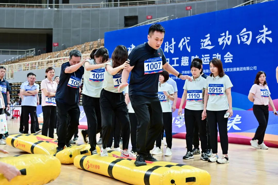 為激發(fā)廣大干部職工工作熱情,豐富職工體育生活,促進(jìn)單位之間的交流融合,不斷提升干部職工隊(duì)伍整體素質(zhì)水平,結(jié)合主題教育,7月14日上午,濟(jì)南文旅集團(tuán)、濟(jì)南城市投資集團(tuán)、濟(jì)南市土地儲(chǔ)備交易中心在濟(jì)南奧體中心東荷體育館中心場地共同舉辦“建功新時(shí)代 運(yùn)動(dòng)向未來”趣味運(yùn)動(dòng)會(huì)。本次運(yùn)動(dòng)會(huì)共有19支代表隊(duì),近400人參加。