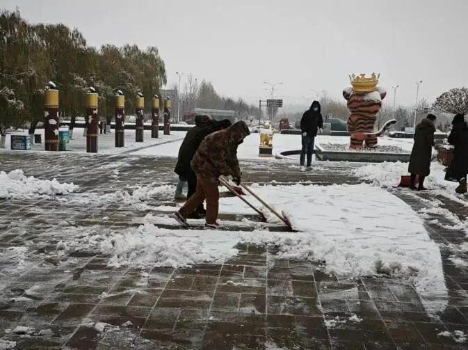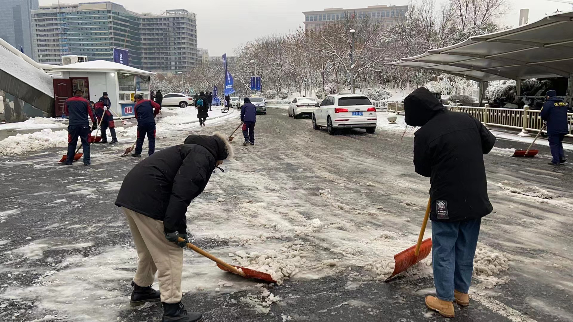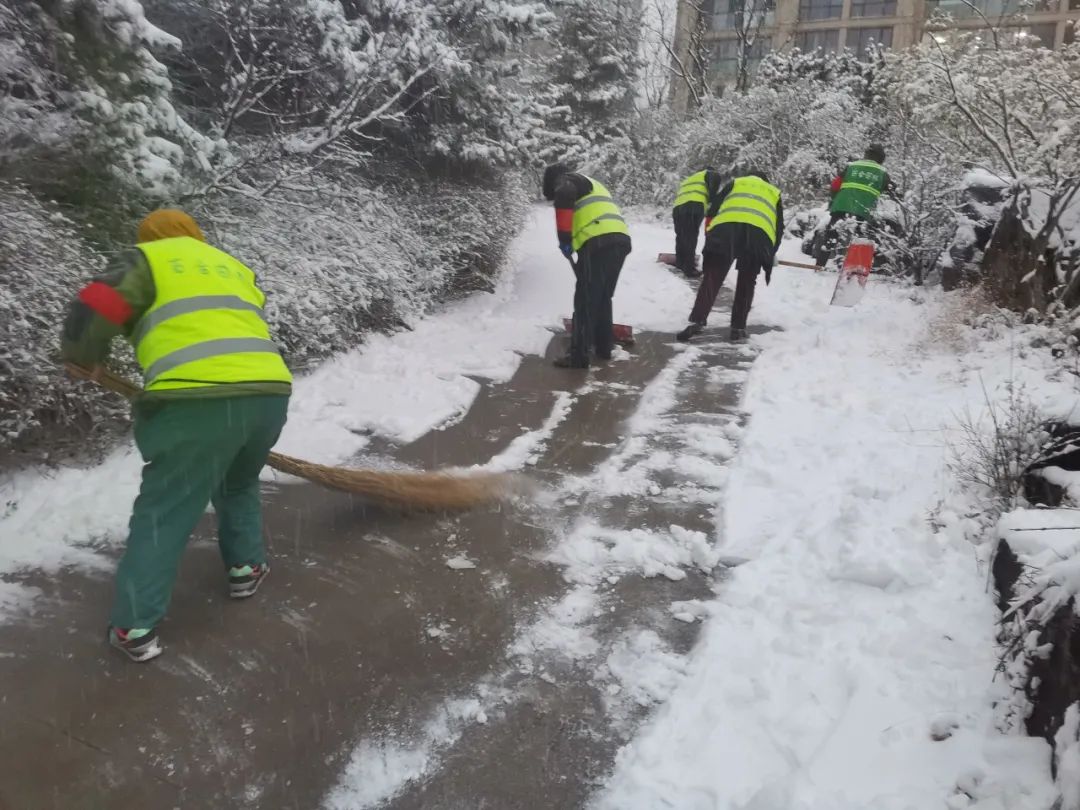 自濟南市氣象臺發(fā)布寒潮黃色預(yù)警后,文旅積余公司組織召開“掃雪除冰”專題會議,提前部署,做好掃雪物資儲備和應(yīng)急預(yù)案。降雪后,第一時間組建掃雪隊伍,迅速投入到掃雪工作中,確保項目園區(qū)、道路暢通,群眾出行安全。