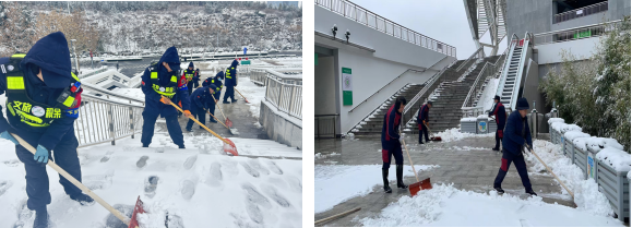 為做好惡劣天氣應(yīng)對工作,神洲公司提前制定雨雪天氣應(yīng)急預(yù)案,成立領(lǐng)導(dǎo)小組,對各部室任務(wù)作出詳細(xì)部署,確保全體員工知責(zé)、明責(zé)、盡責(zé),全面完成積雪清理工作。針對危險陡坡臺階,放置警示標(biāo)志,做好水電維護保暖,防止安全事故。提前準(zhǔn)備應(yīng)急物資,新采購除雪鍬50把,融雪劑100袋,提前組織夜間值班人員開展主干道清雪,做好設(shè)備檢修。
