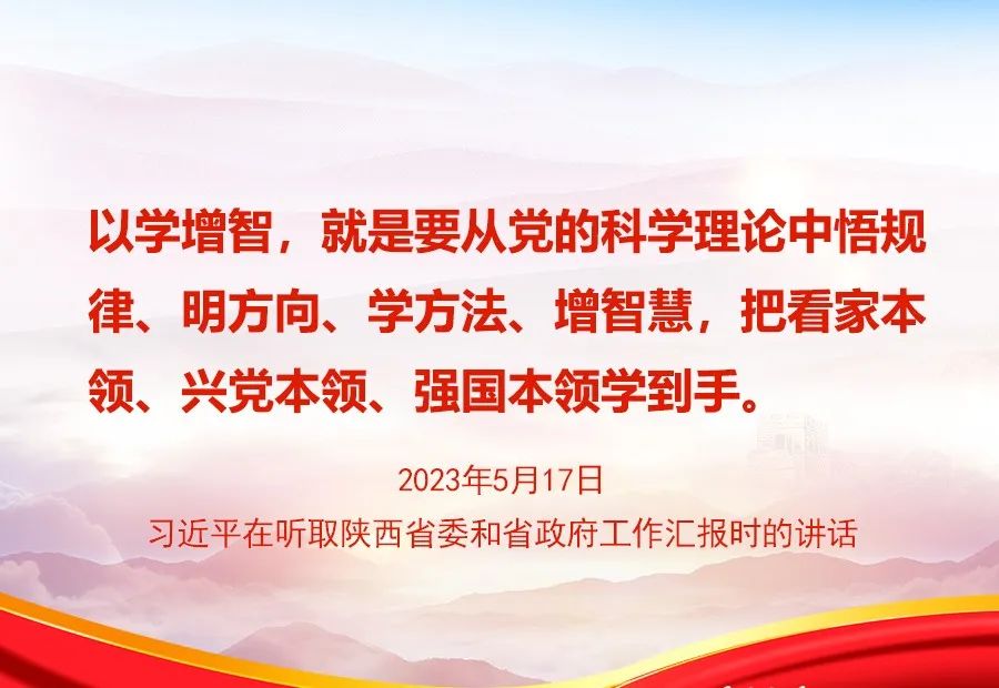 2023年5月17日,習(xí)近平總書記在聽取陜西省委和省政府工作匯報(bào)時指出,學(xué)習(xí)貫徹新時代中國特色社會主義思想主題教育正在全黨深入開展,各級黨組織務(wù)必在深入、扎實(shí)上下功夫,在以學(xué)鑄魂、以學(xué)增智、以學(xué)正風(fēng)、以學(xué)促干上見實(shí)效。