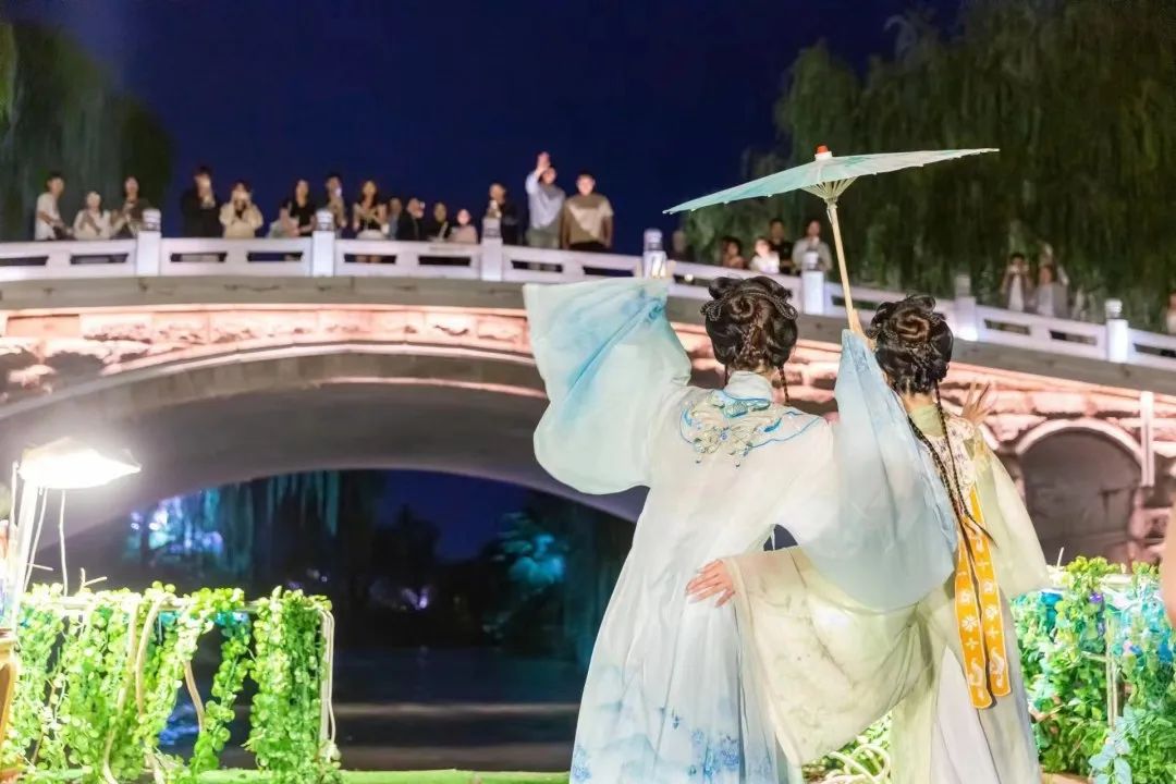 “新的故事在初秋的夜晚,從遇見明湖開始。”8月14日傍晚,濟南大明湖畔的網(wǎng)紅超然樓在亮燈儀式上加入了炫酷的倒計時燈光秀,網(wǎng)紅濟南的夜游新品牌“遇見明湖”項目驚艷亮相,解鎖打開濟南秋天的“新方式”。項目發(fā)布會上,濟南文旅集團分享推薦官介紹,“遇見明湖”打造由“十”大場景、“百”企聯(lián)動、“千”名達人共同構(gòu)建的網(wǎng)紅城市夜游品牌。彈撥樂重奏《春江花月夜》、京歌《梨花頌》和《打登州》選段、戲曲小品《青城山下》、呂劇傳統(tǒng)劇目《逼婚記》……在超然樓前的廣場上,新潮快閃活動陸續(xù)上演,引爆線上線下“雙流量”。