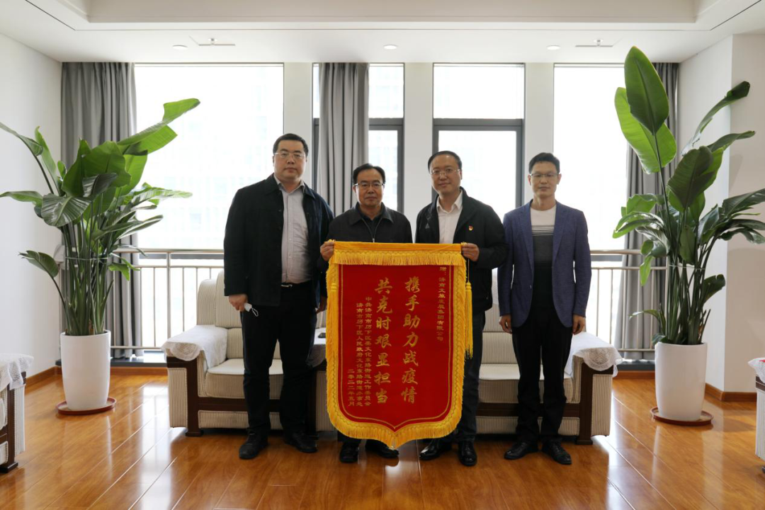 5月9日上午,王舍人街道辦事處向濟(jì)南文旅投資集團(tuán)有限公司贈(zèng)送錦旗及感謝信,以感謝濟(jì)南文旅投資志愿服務(wù)隊(duì)各位同志在疫情防控期間不辭辛苦,沖鋒在前線,扛起疫情防控責(zé)任,為打贏疫情防控阻擊戰(zhàn)、守護(hù)人民群眾生命健康作出了重要貢獻(xiàn)。